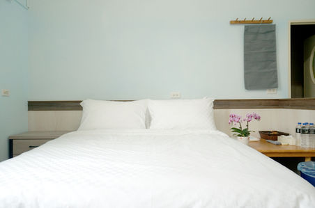 我們有1間雙人房、2間四人房、1間六人房及1間八人房型,每一間房型都是標準雙人床,除此之外,每一間都附有冷氣、浴室、吹風機、礦泉水及電視等。
